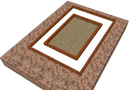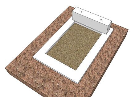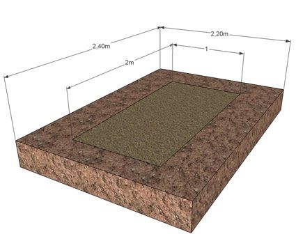 При помощи шуруповерта отвертки необходимо собрать доски опалубки. Эти рамки устанавливать нужно по уровню выше нуля на 4-5 см. далее проверяются углы и диагонали. После этого нужно залить второй слой цементного раствора. Опорные точки при этом следует оставить открытыми (на схеме вы видите их закрытыми). Засыпать землей их следует только по завершении повторного застывания раствора.